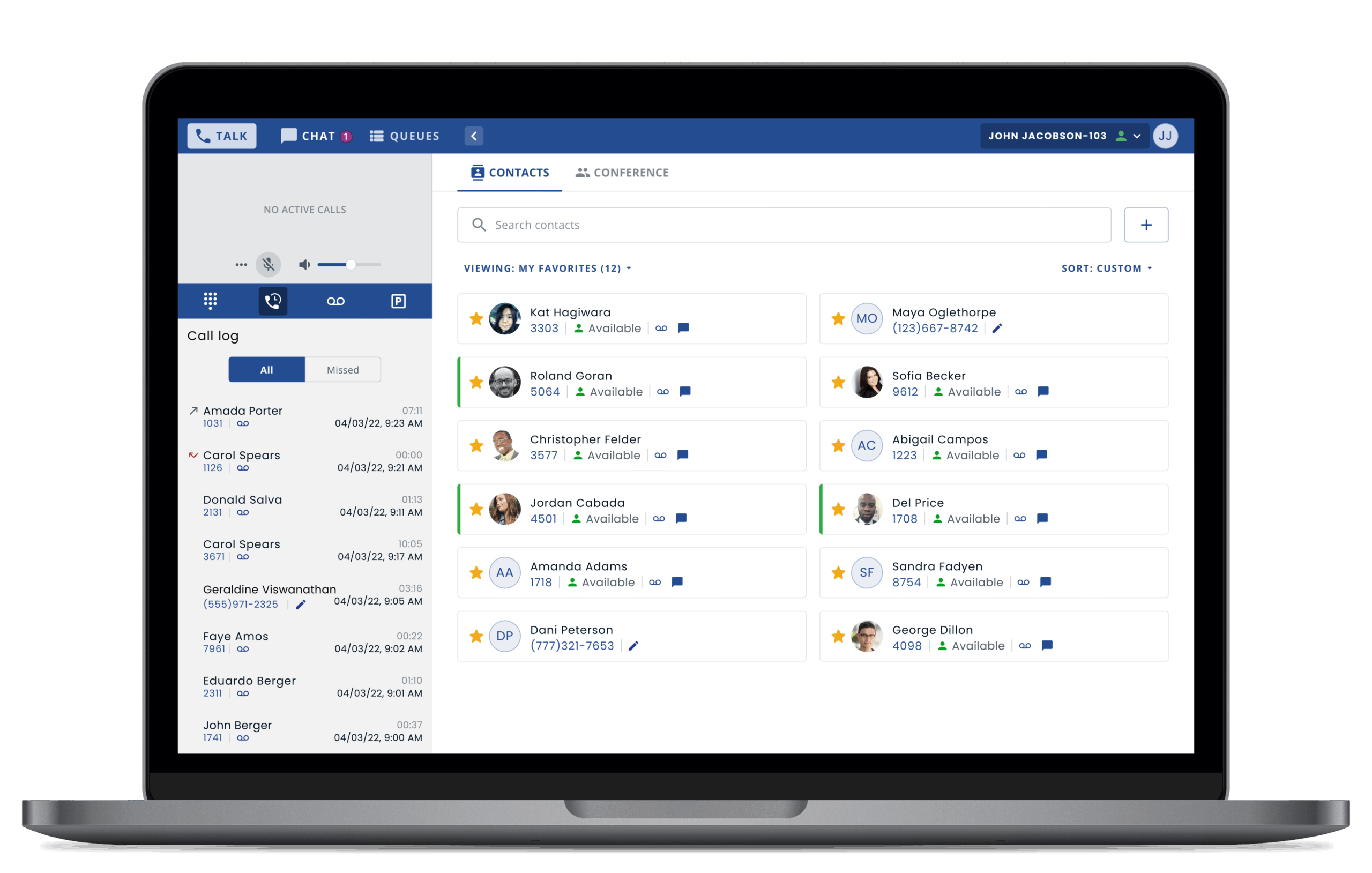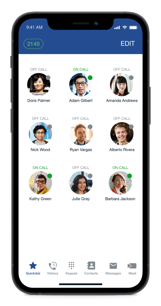 Cree una lista de contactos favoritos para facilitar el acceso con BLF (luces indicadores del estado, por sus siglas en inglés) que también muestre el estado actual de sus compañeros de trabajo.