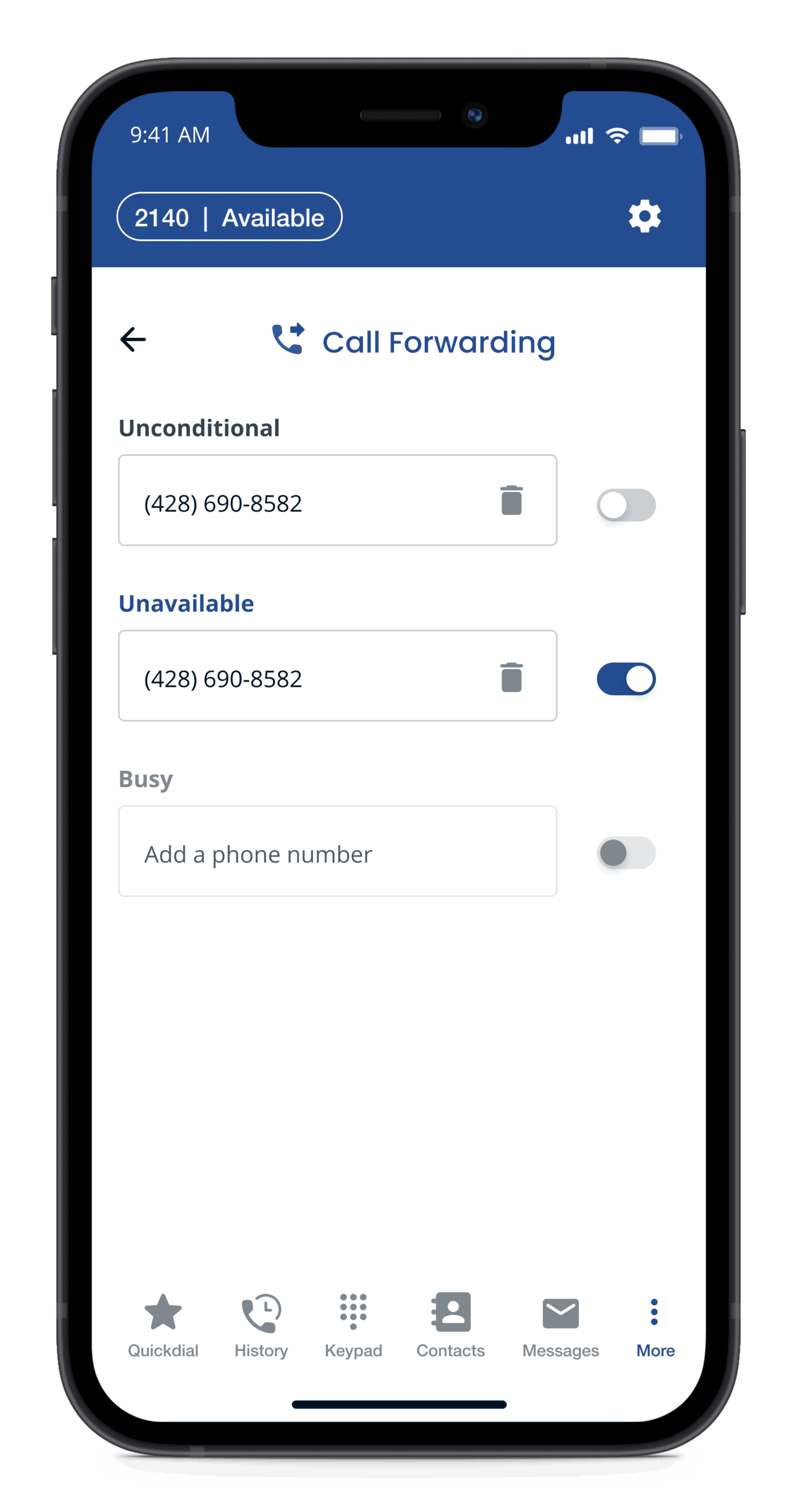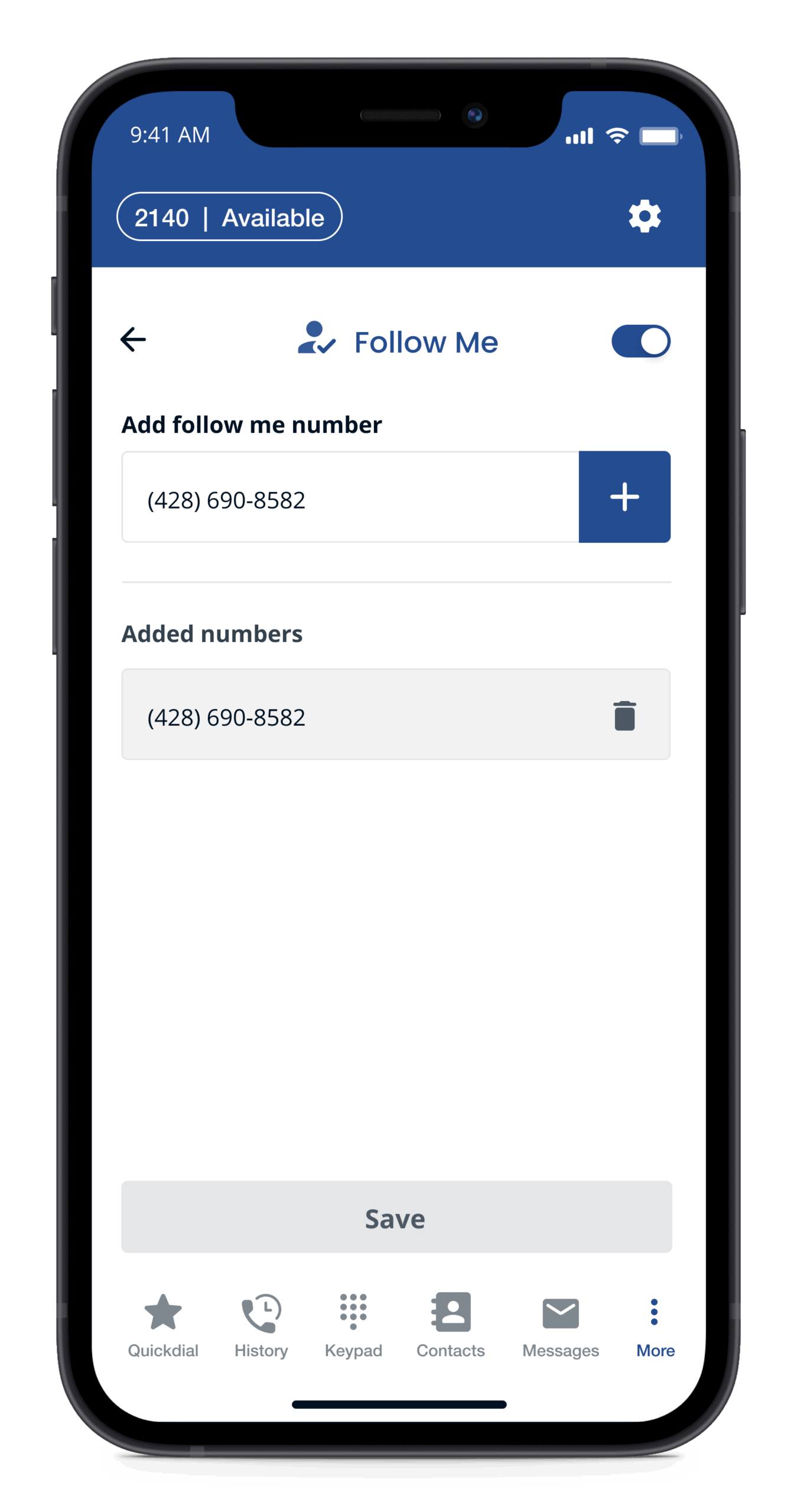Silencie todas las llamadas comerciales entrantes cuando no quiera que le molesten. Puede hacerlo de forma manual o a través de la función de programación para configurar automáticamente el modo DND cuando esté fuera del horario comercial.